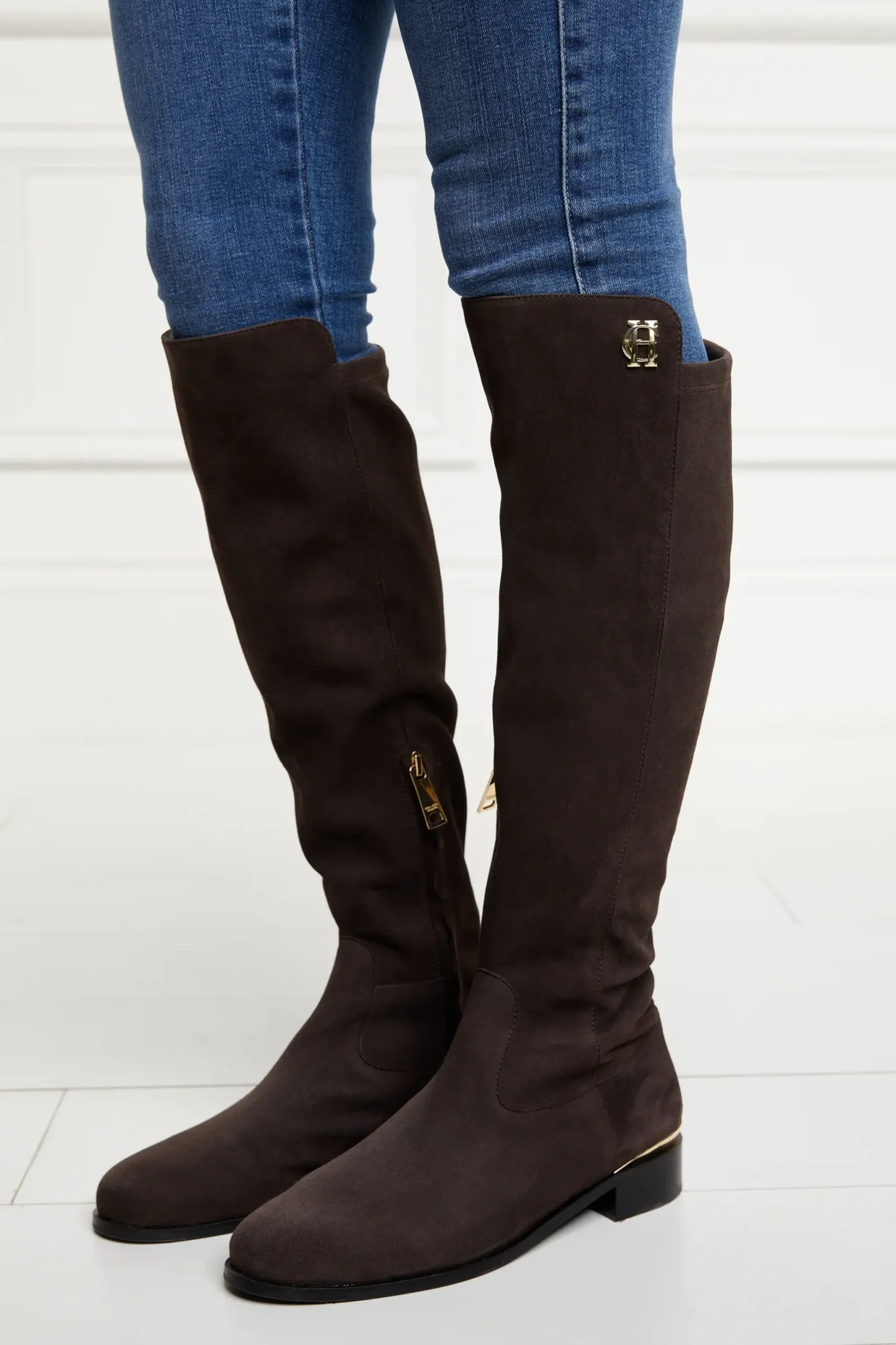 Holland Cooper Albany Knee Boot Chocolate Suede Best
