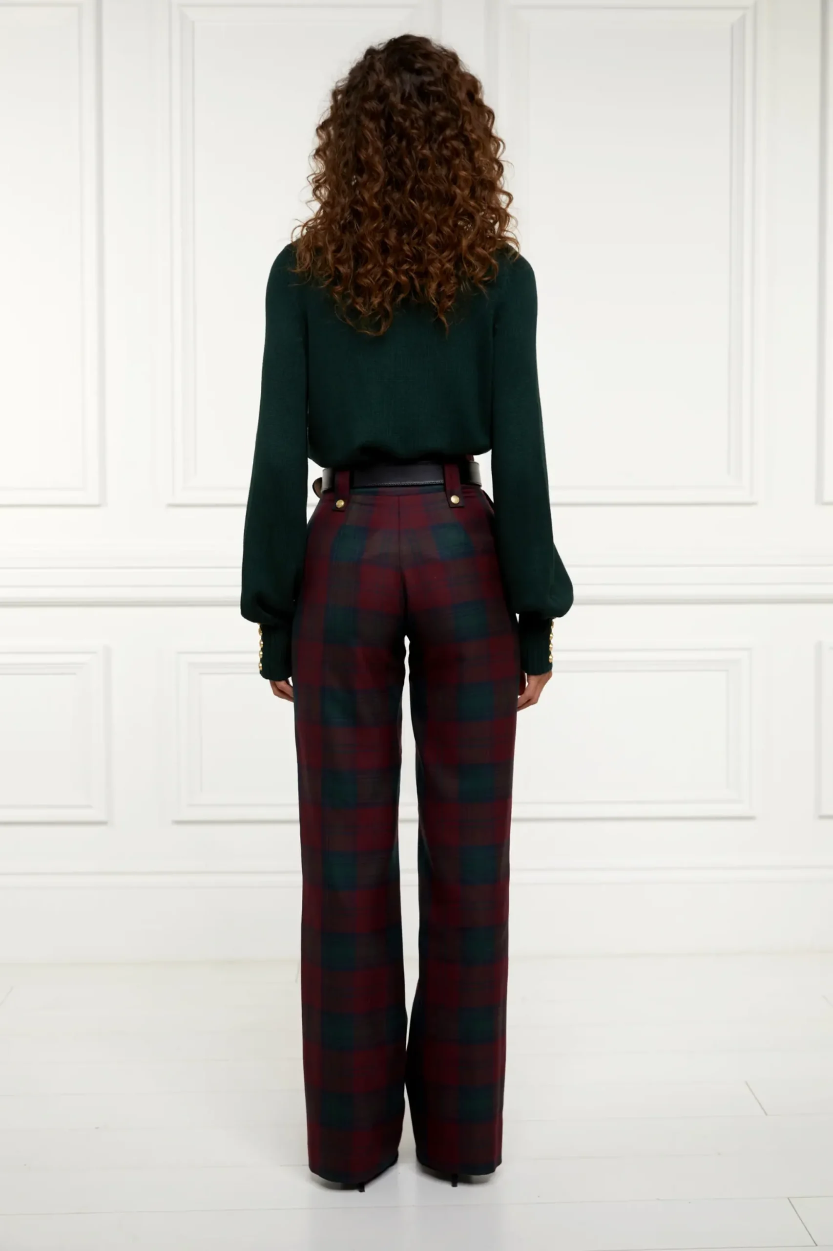 Holland Cooper High Waisted Straight Trouser Mulberry Tartan Discount