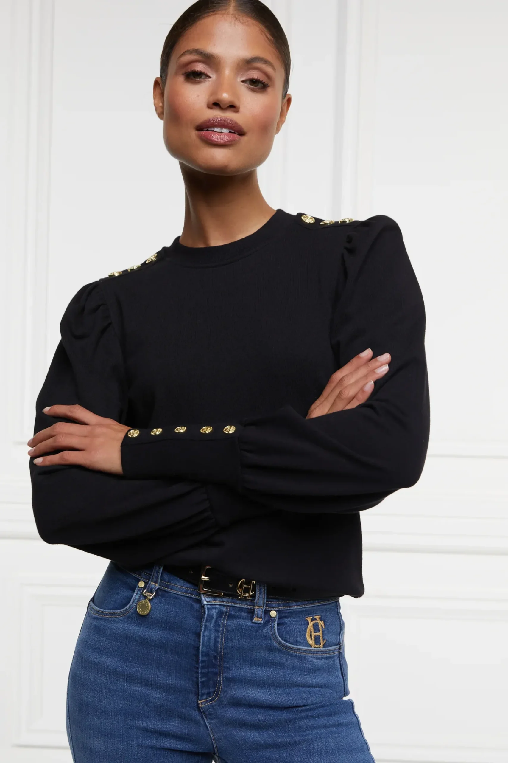 Sumptuously soft and lightweight, this crew neck jumper is the perfect every day piece to add to your wardrobe. Featuring long ribbed cuffs and hems as well as a subtle puff shoulder for a softer appearance. Finished off with our signature gold HC hardware on the shoulder.