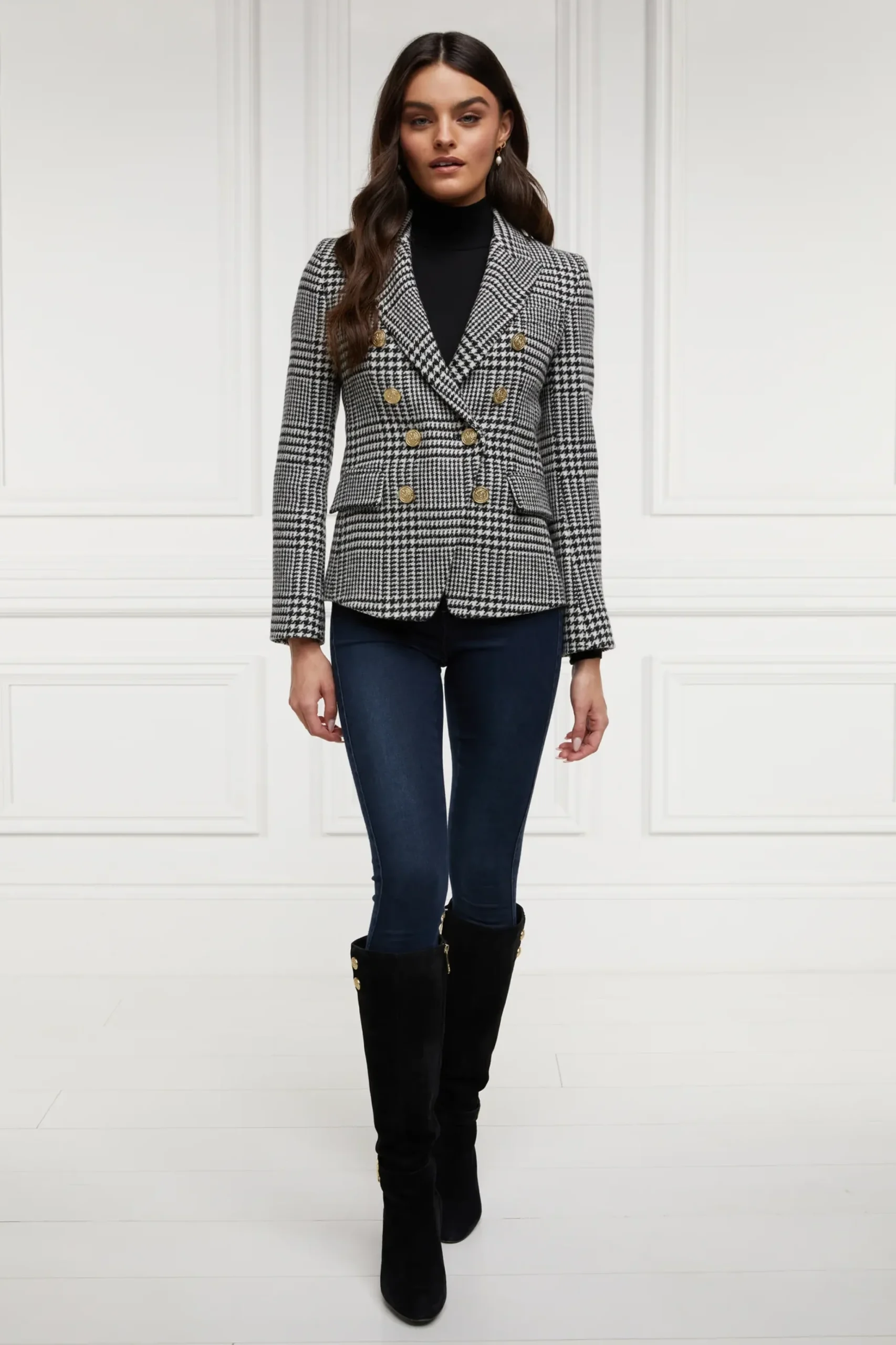 Made from wools woven in the UK, this blazer has a slim, double-breasted silhouette featuring HC’s signature crested rivets. Precisely tailored to ensure a sharp and tailored profile worn open or closed, each blazer has been fully lined with a luxury stretch lining for comfort.