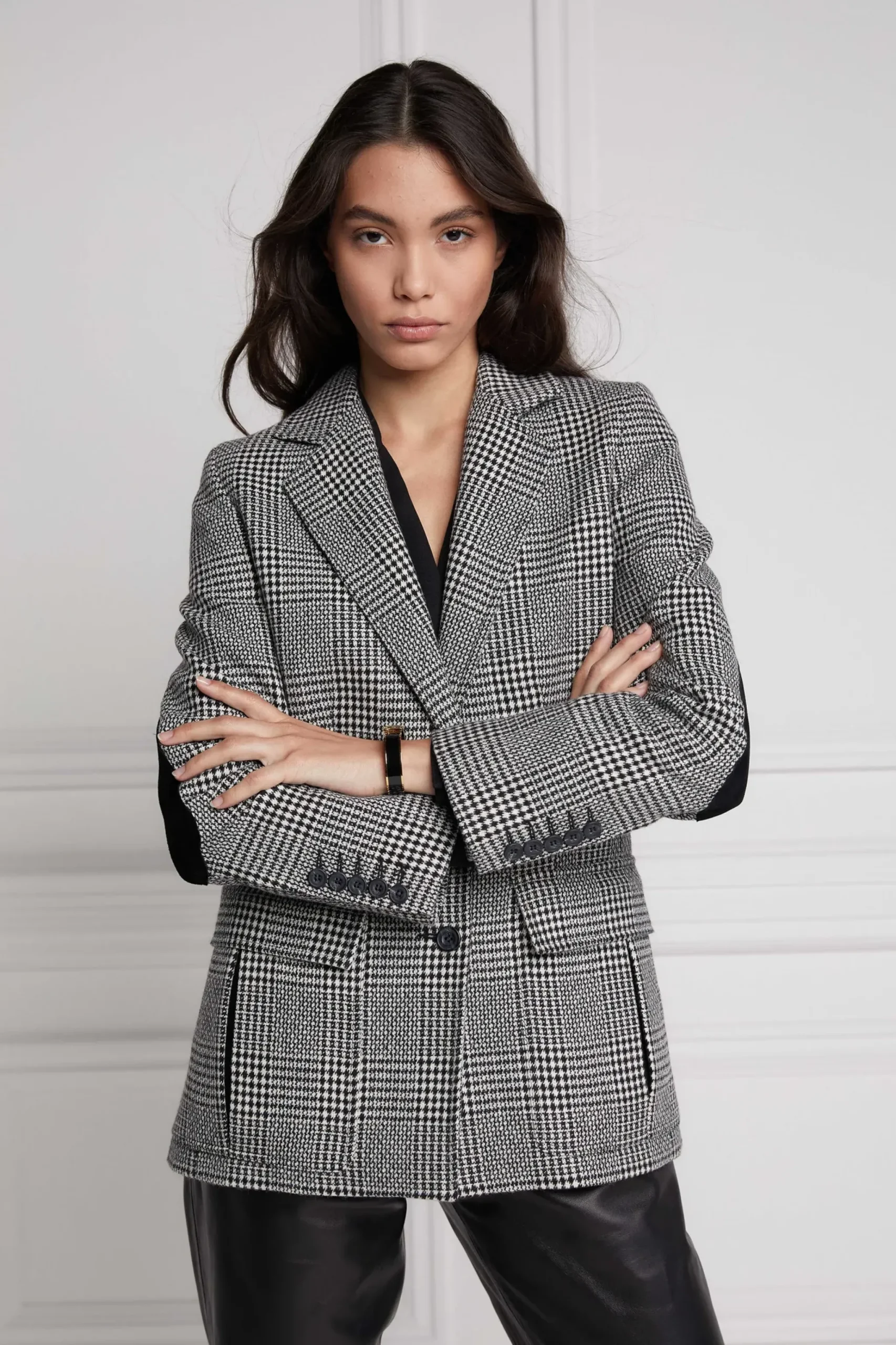 Handmade from British wools will intricate suede trims, our Paddington Blazers are a hybrid between our Single Breasted and Mayfair Blazers. With a stretch lining for extra movement and comfort, the tailored fit creates for a slimming silhouette. Detailed with lower patch style pockets and branded faux horn buttons, these blazers will take your style effortlessly through the Autumn season. Pair with a button knit roll neck and trousers for a chic and put together look.