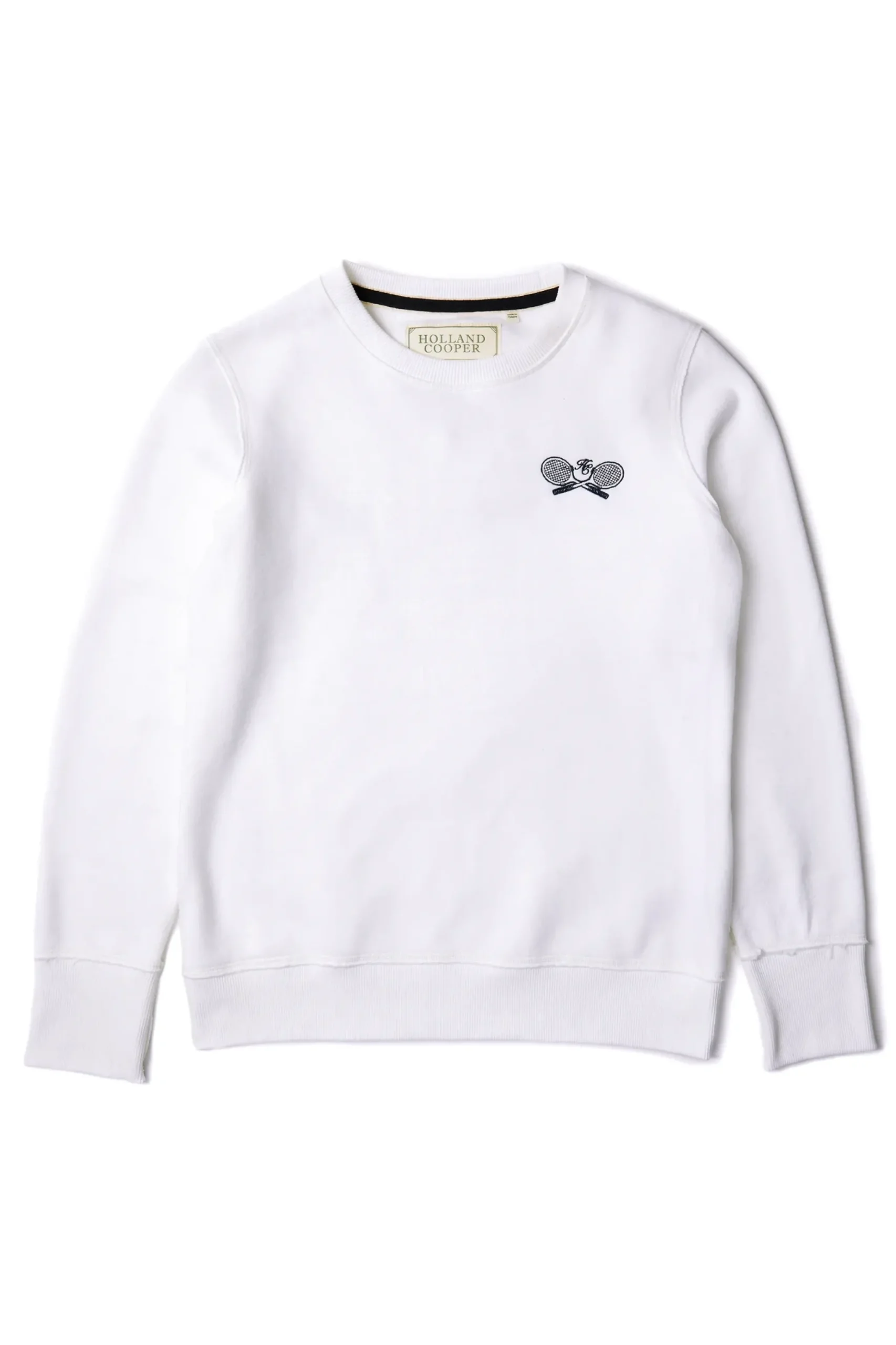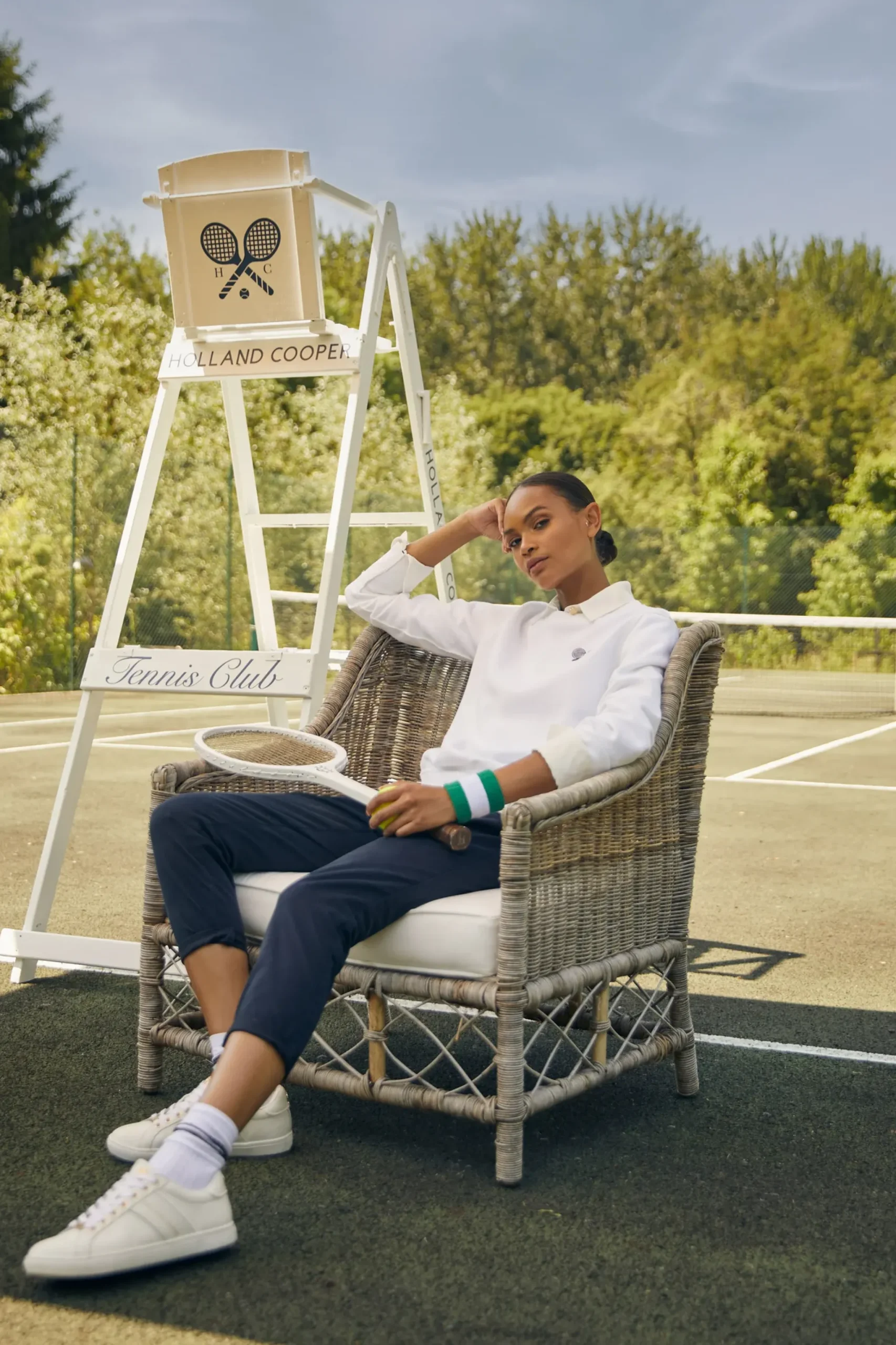 Holland Cooper’s take on sporty summers, by revisiting the preppy golden age of tennis style with our Racquets club pieces. Designed for a relaxed fit in a soft cotton mix, it features ribbed cuffs and hem with two embroidery racquets on the chest. Pair with jeans or sweats for a casual, everyday look designed for comfort.