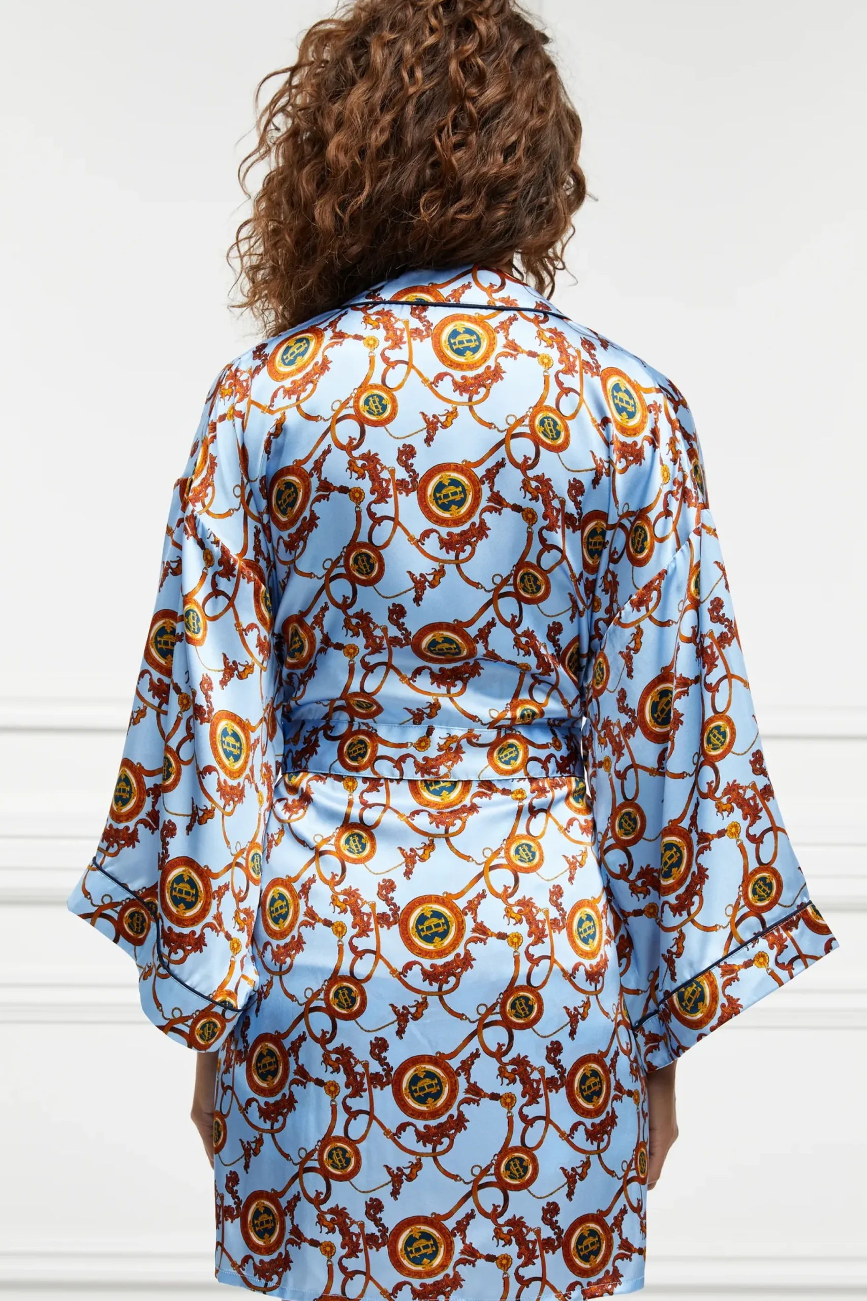 Holland Cooper Silk Dressing Gown Sky Blue Clearance