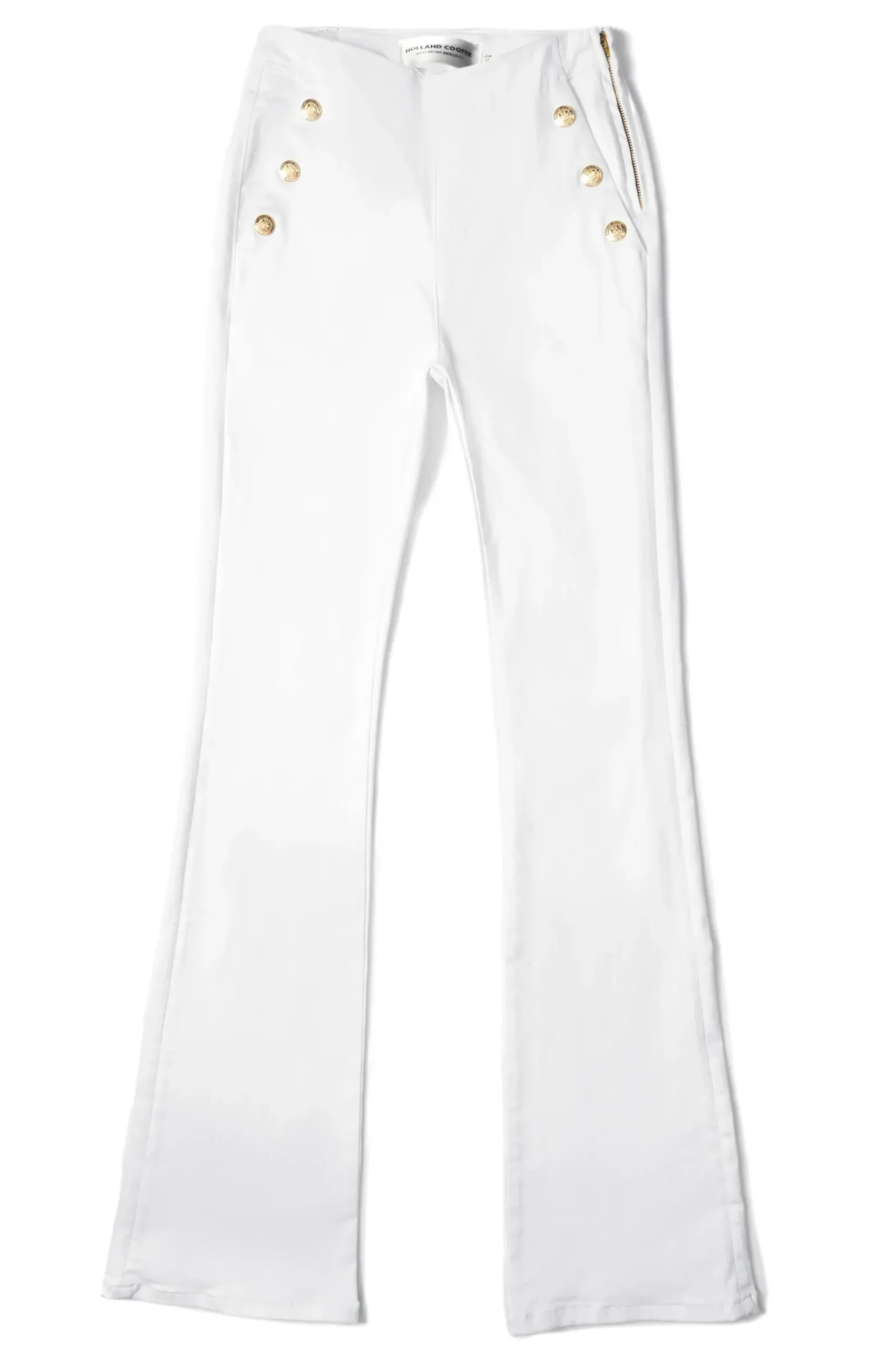 Made with super soft stretch denim featuring a high-rise waist and side zip entry, these luxurious jeans flick out into an elegant flare that adds an extra something to every-day looks. The stand out feature is the sailor front accompanied with 6 signature HC crested rivets to the front. Available in Petite, Regular & Tall.