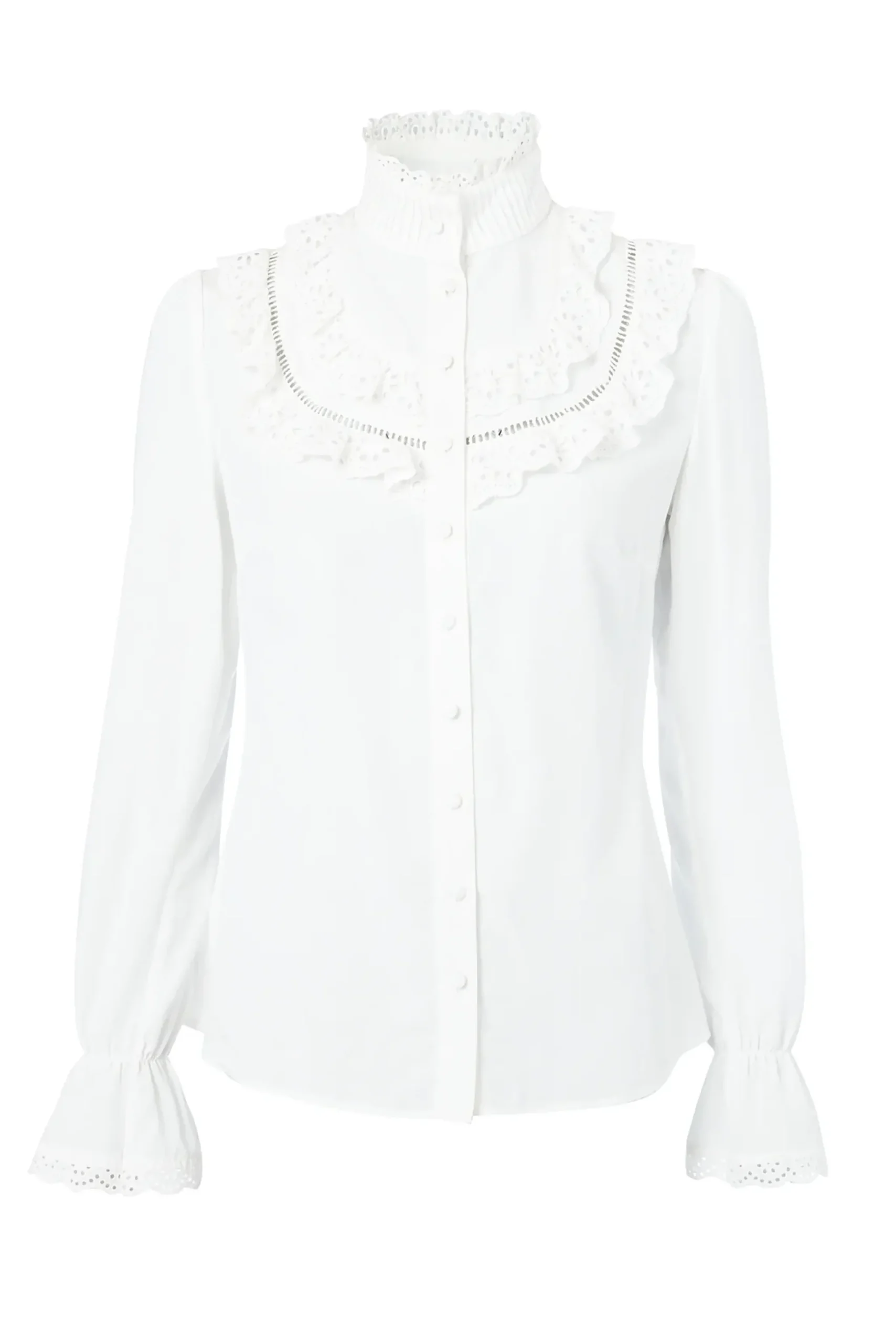 Designed with a slim fit with delicate lace trim to both the collar and cuff edges, this shirt is beautifully elegant and timeless. With flattering lace details to the front body for a true bohemian & vintage feel, the feminine style makes this piece perfect for both day and night styling.