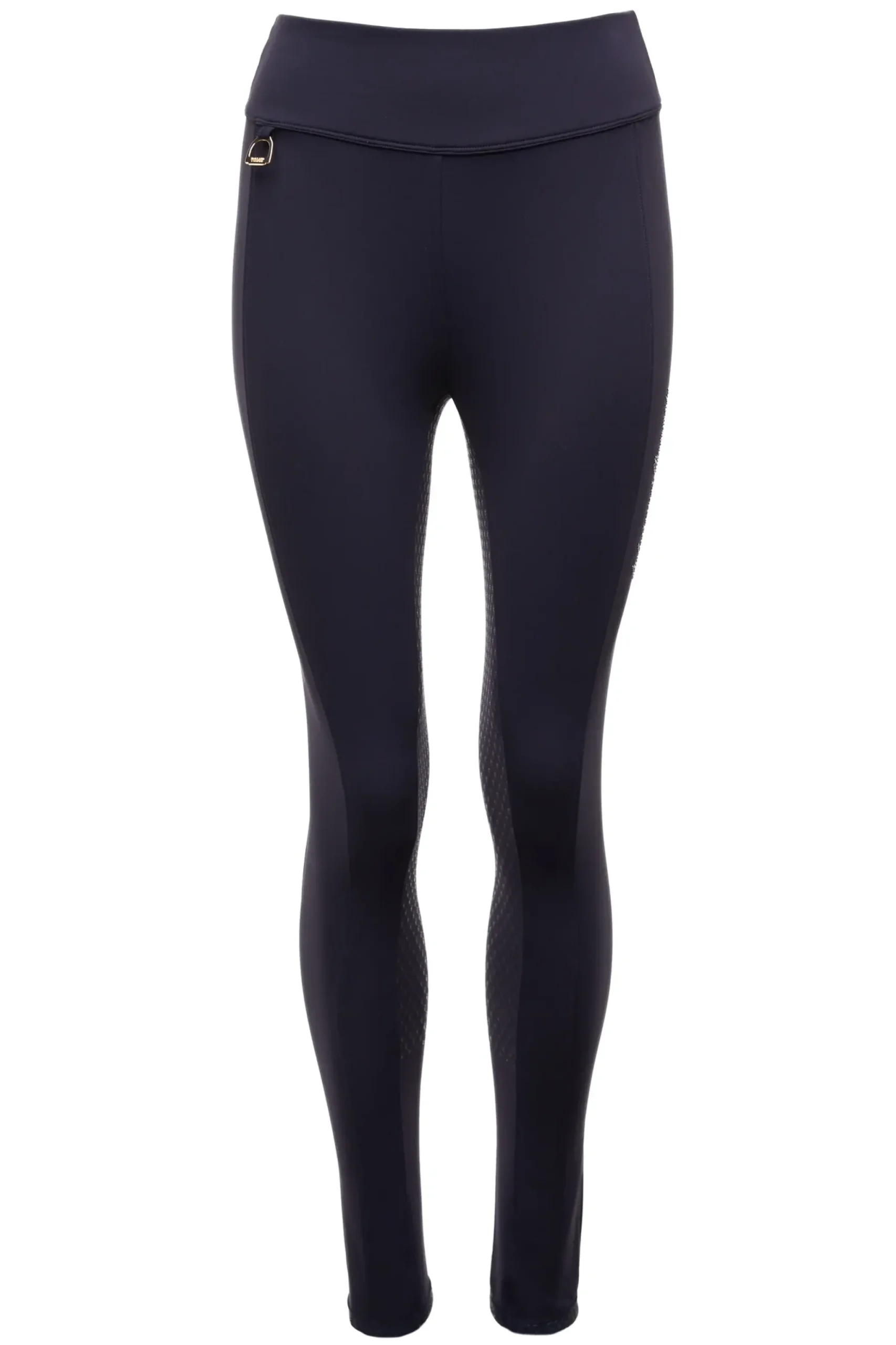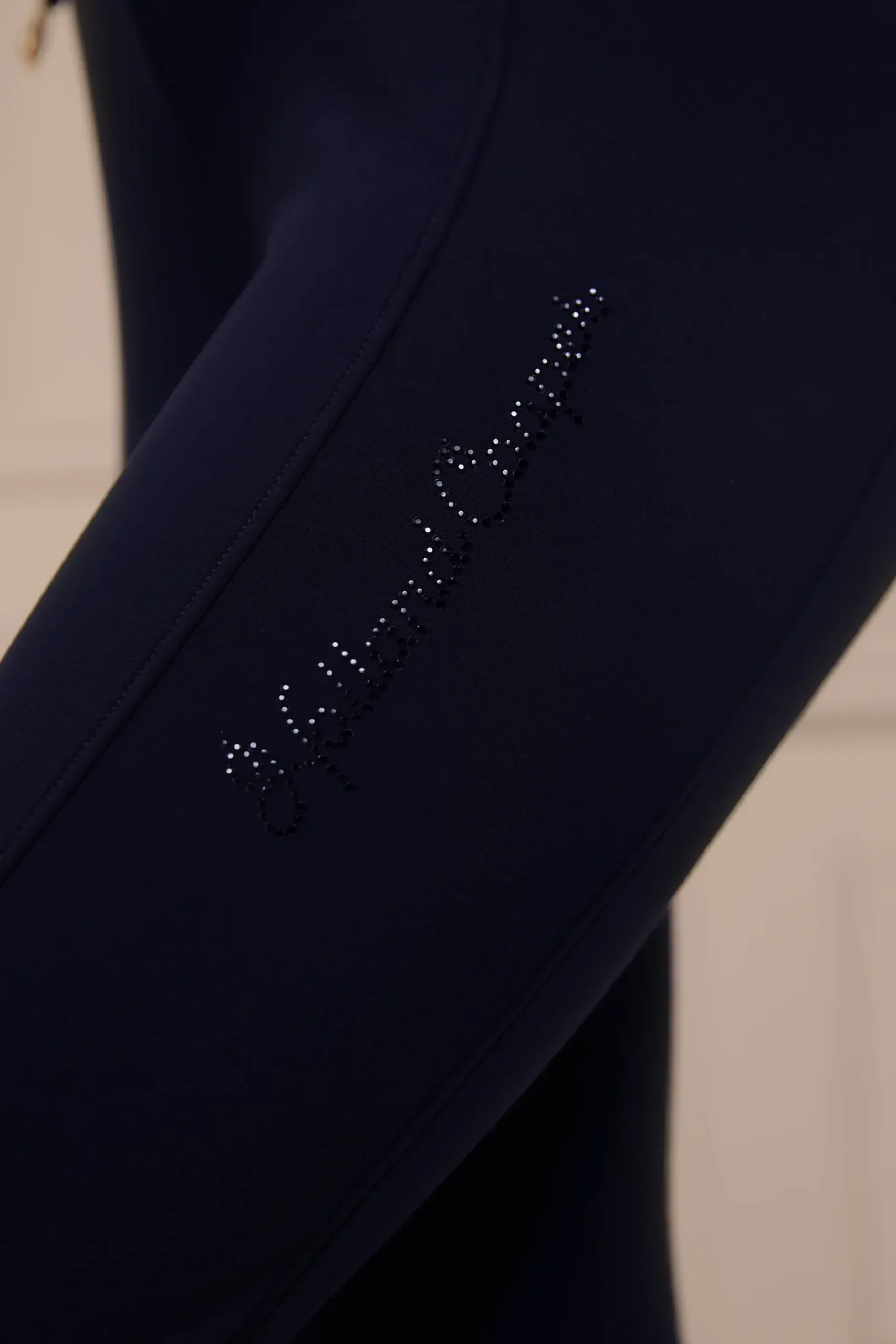 Lined with a luxuriously soft fleece, these water-resistant leggings were designed to ensure maximum movement and comfort whilst in and out of the saddle. High-waisted and made with a slim fit that lifts and contours your figure. Complete with monogrammed silicone riding knee grips and embellished with Swarovski® crystals to the leg.