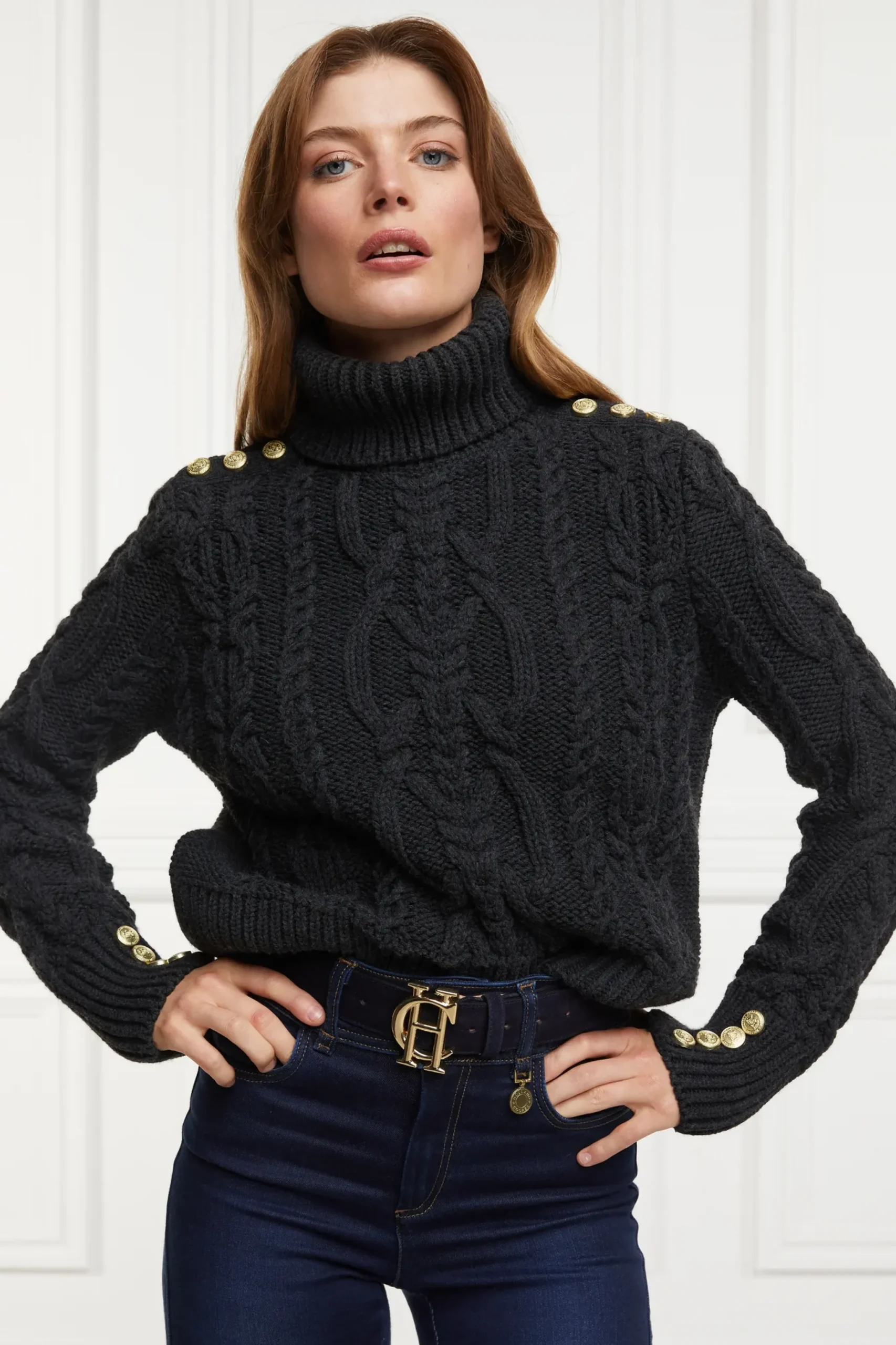 Holland Cooper Belgravia Cable Knit Dark Grey Marl
