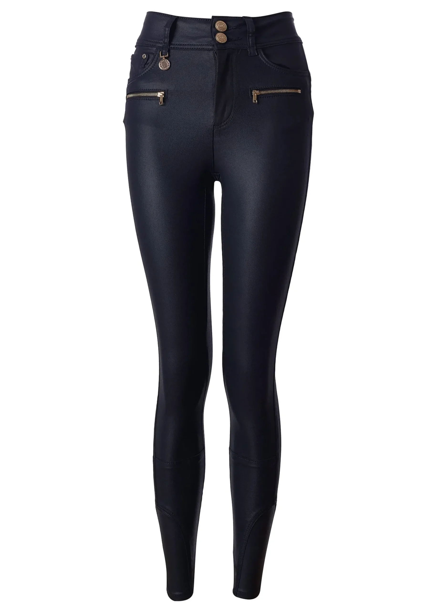 Our jeans are skinny fit, high-waisted and made from extra contouring, sculpting fabrics to ensure the most flattering figure-hugging fit. With a coated finish creating an elegant wax-like effect, these jeans are an elevated everyday essential. Detailed with signature gold hardware and embroidered HC logo, they are both stylish and unique.