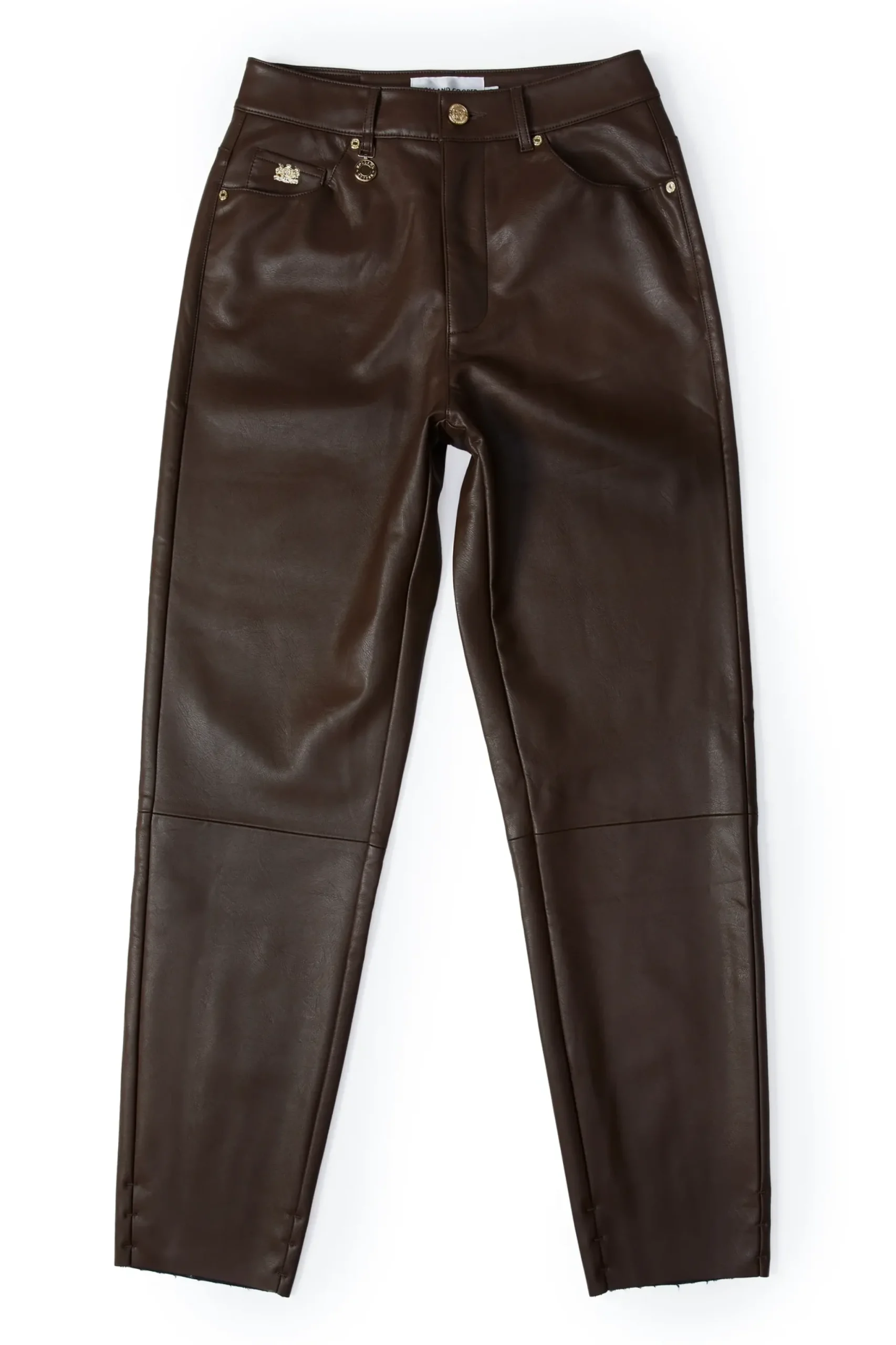 Holland Cooper Dunwick Faux Leather Pant Tobacco New