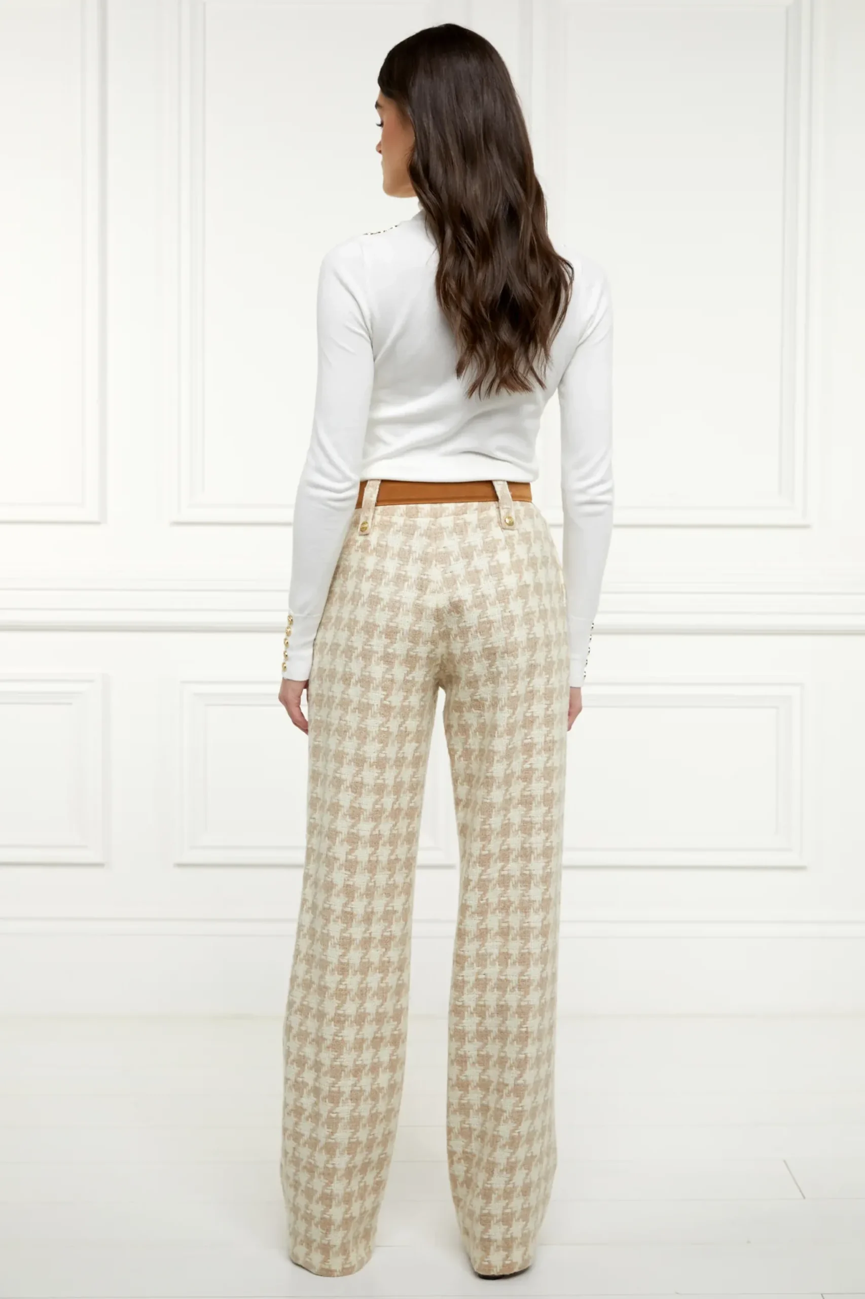 Holland Cooper High Waisted Straight Trouser Camel Houndstooth Discount