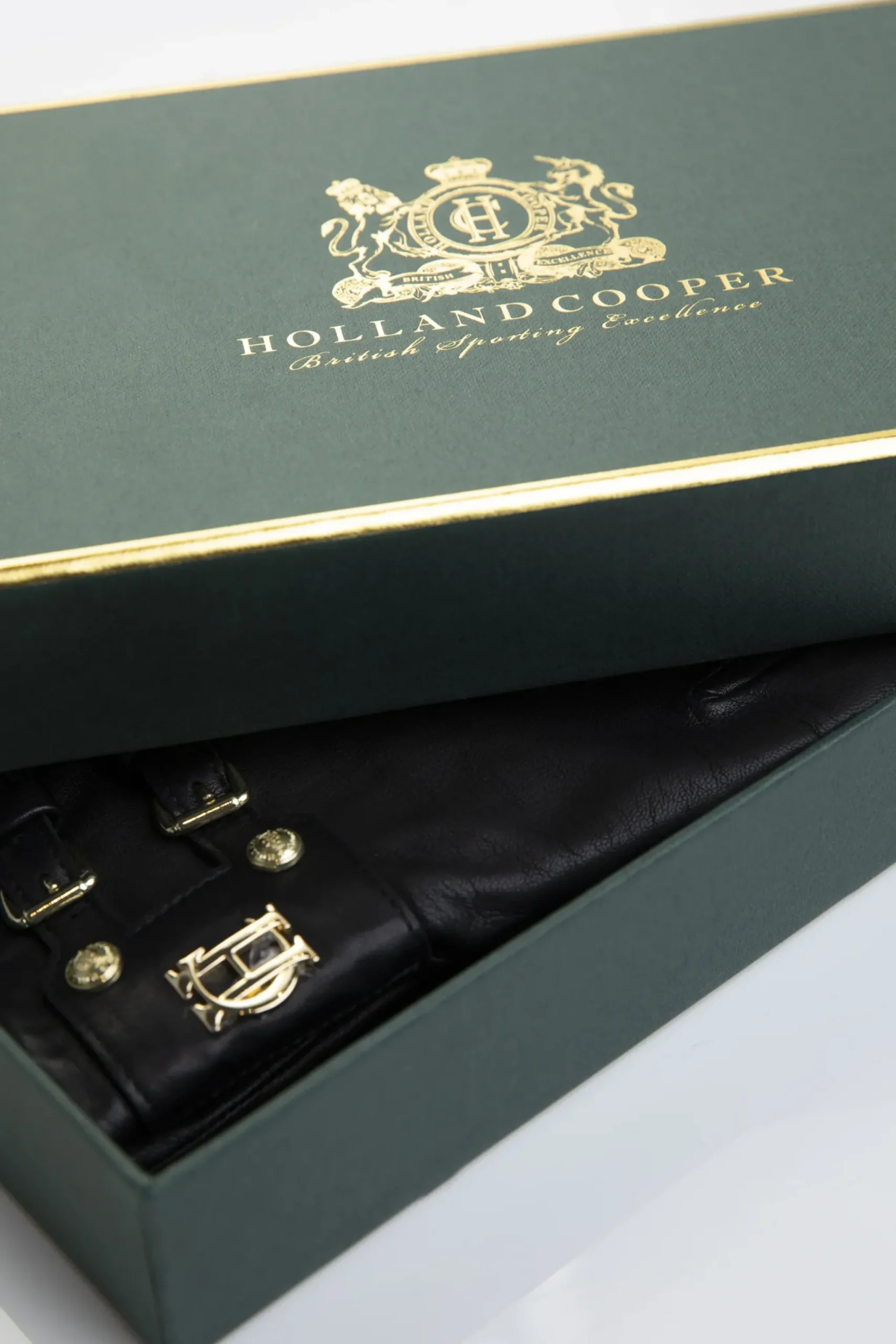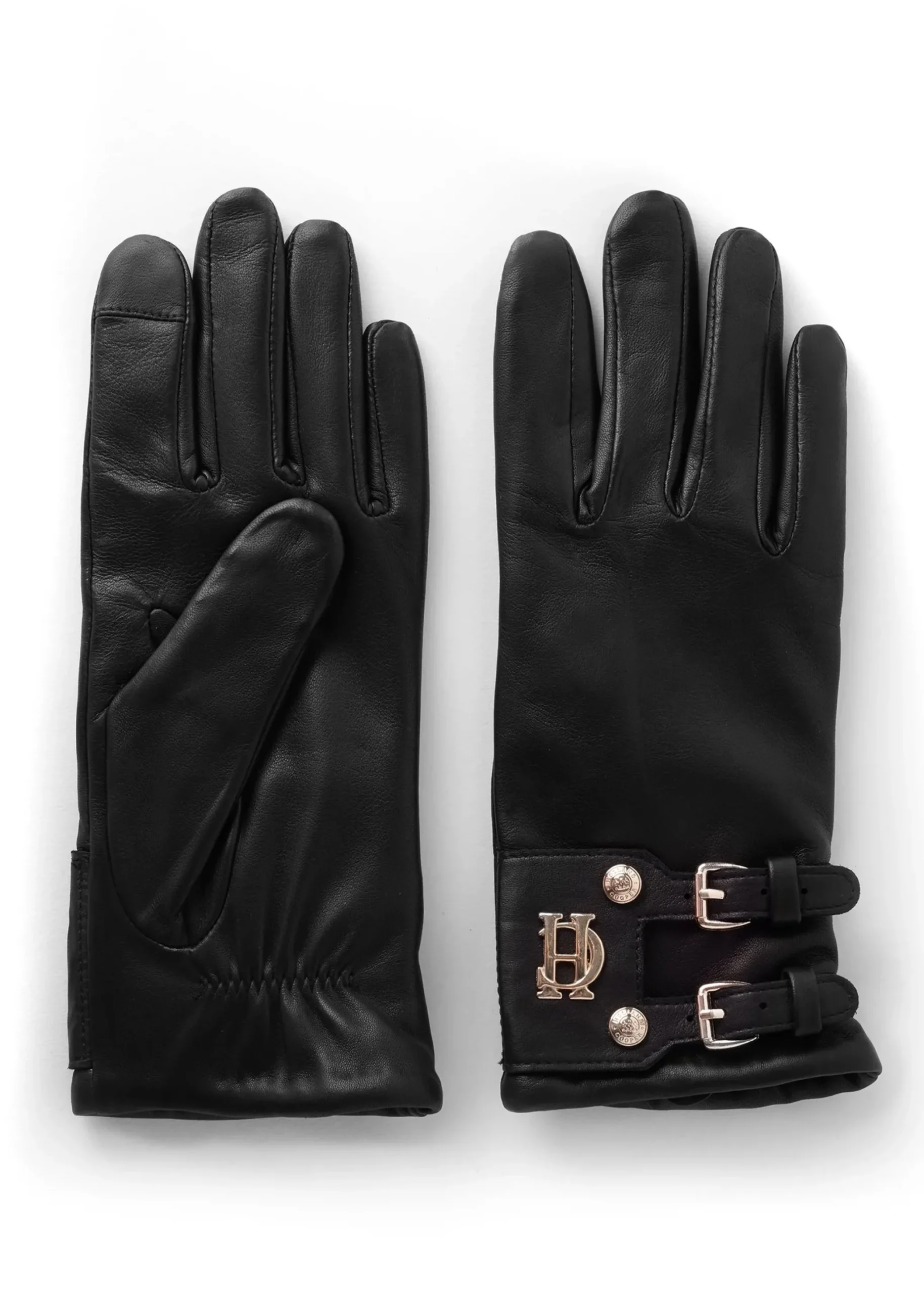 Holland Cooper Monogram Leather Gloves Black Clearance