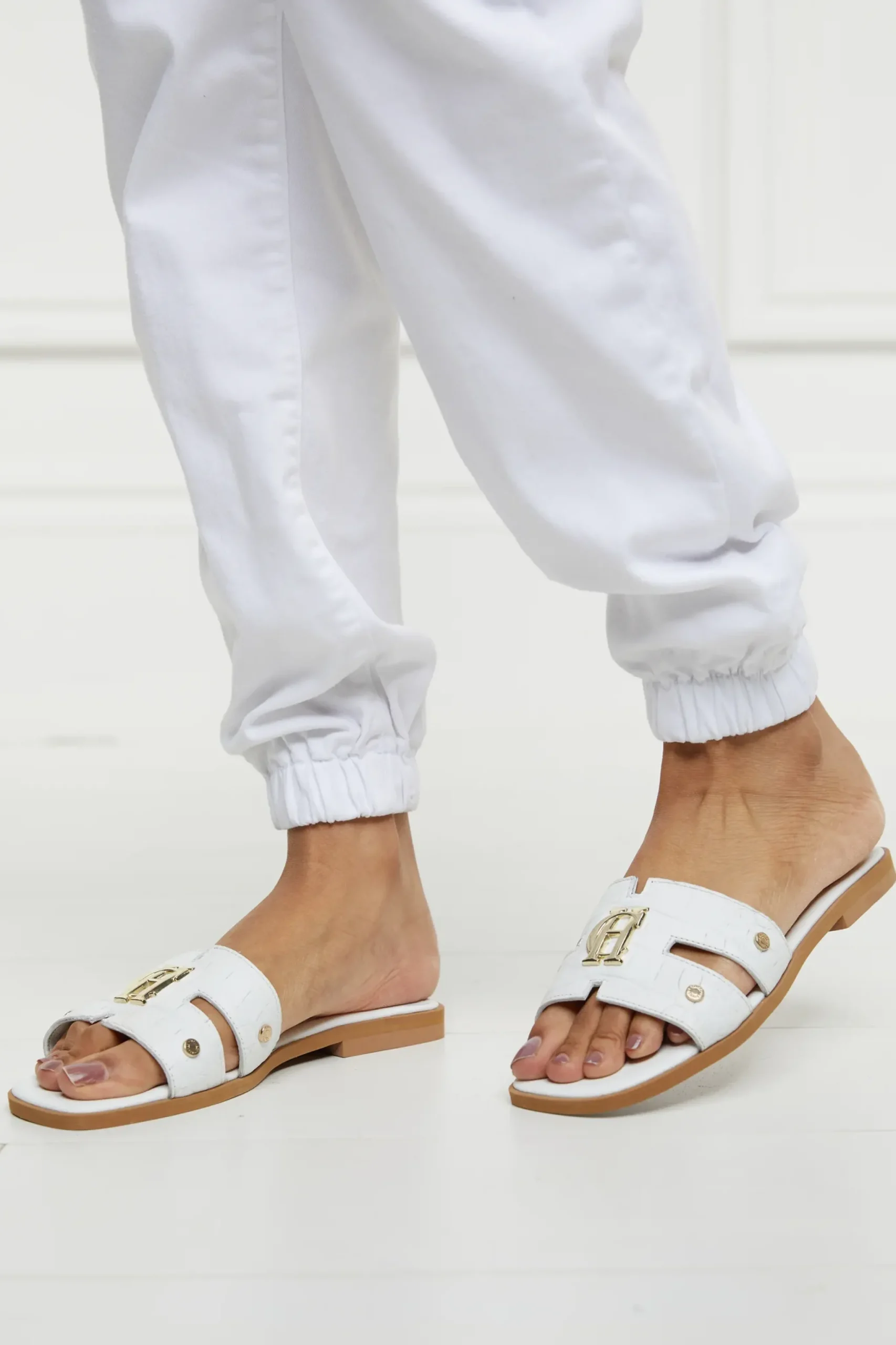 Holland Cooper Monogram Slides White Croc Sale