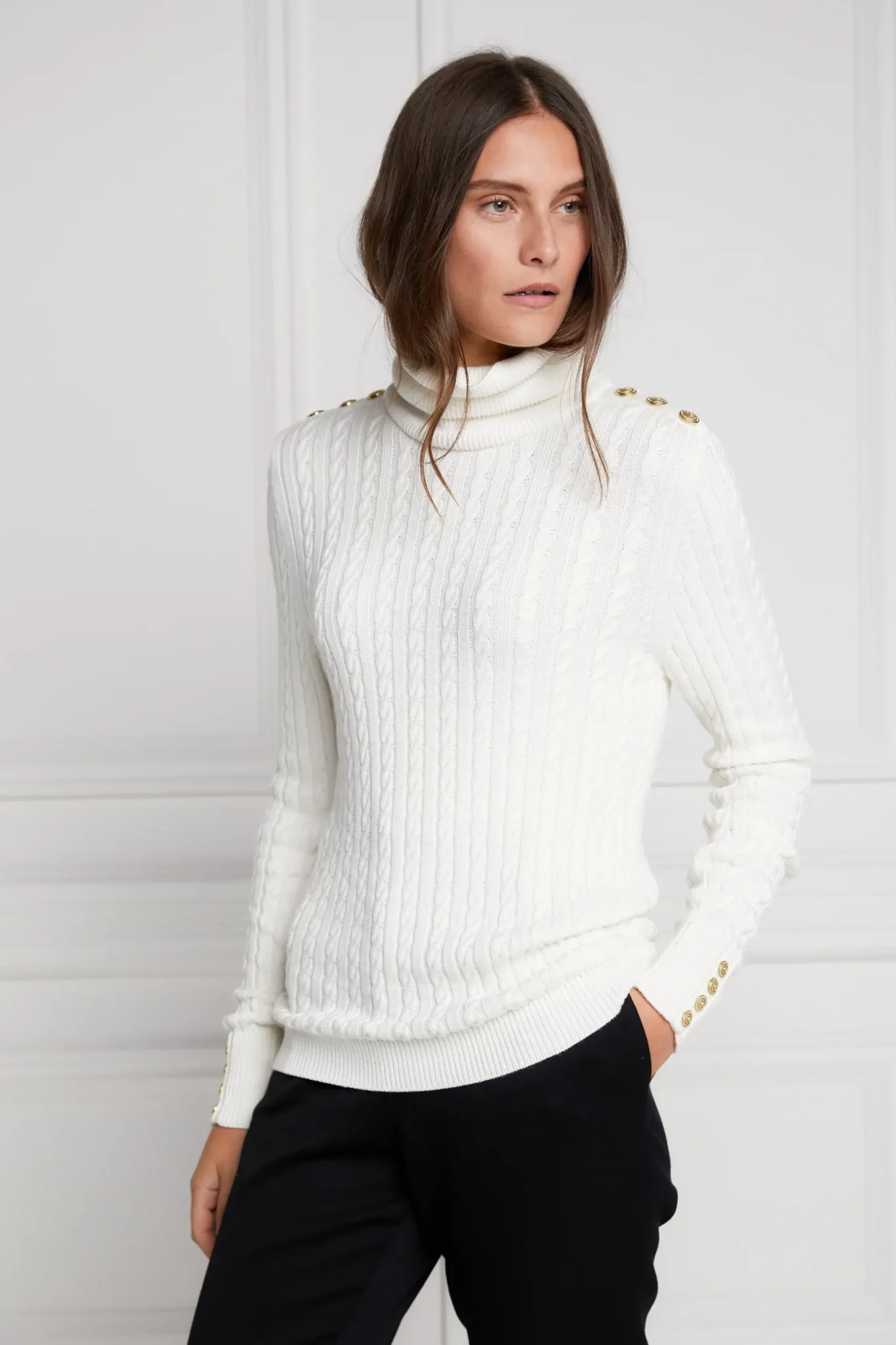 Holland Cooper Seattle Roll Neck Cable Knit Winter White Discount