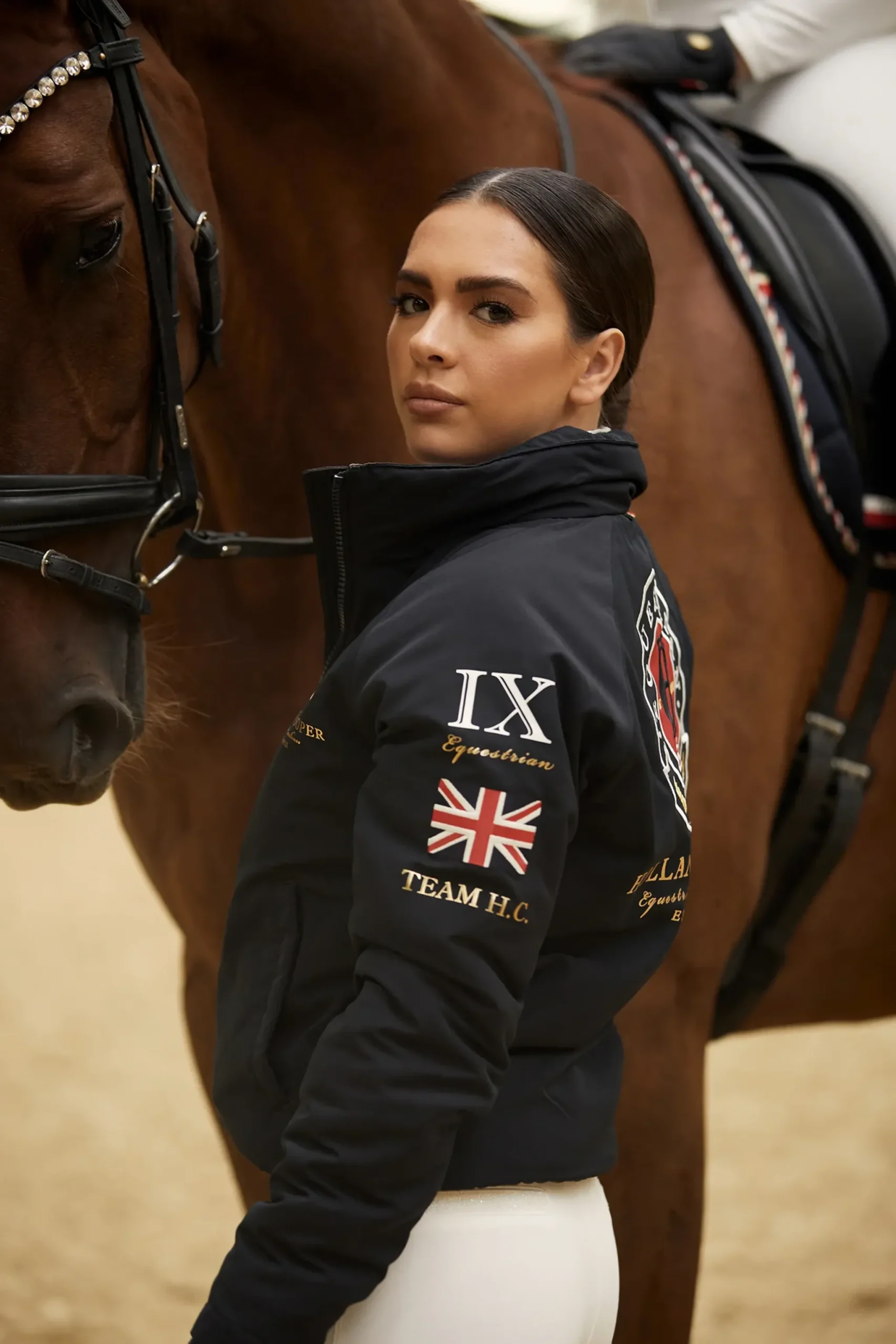 The Holland Cooper Team riding Jacket collection is a luxurious blend of sporting heritage and national pride. Composed of hard wearing, water-resistant shell fabric and lined with a soft polar fleece, this classic jacket transgresses many environmental boundaries and ensure comfort in or out of the saddle. Designed with a bold colour-block aesthetic and emblazoned with signature HC Equestrian graphics.