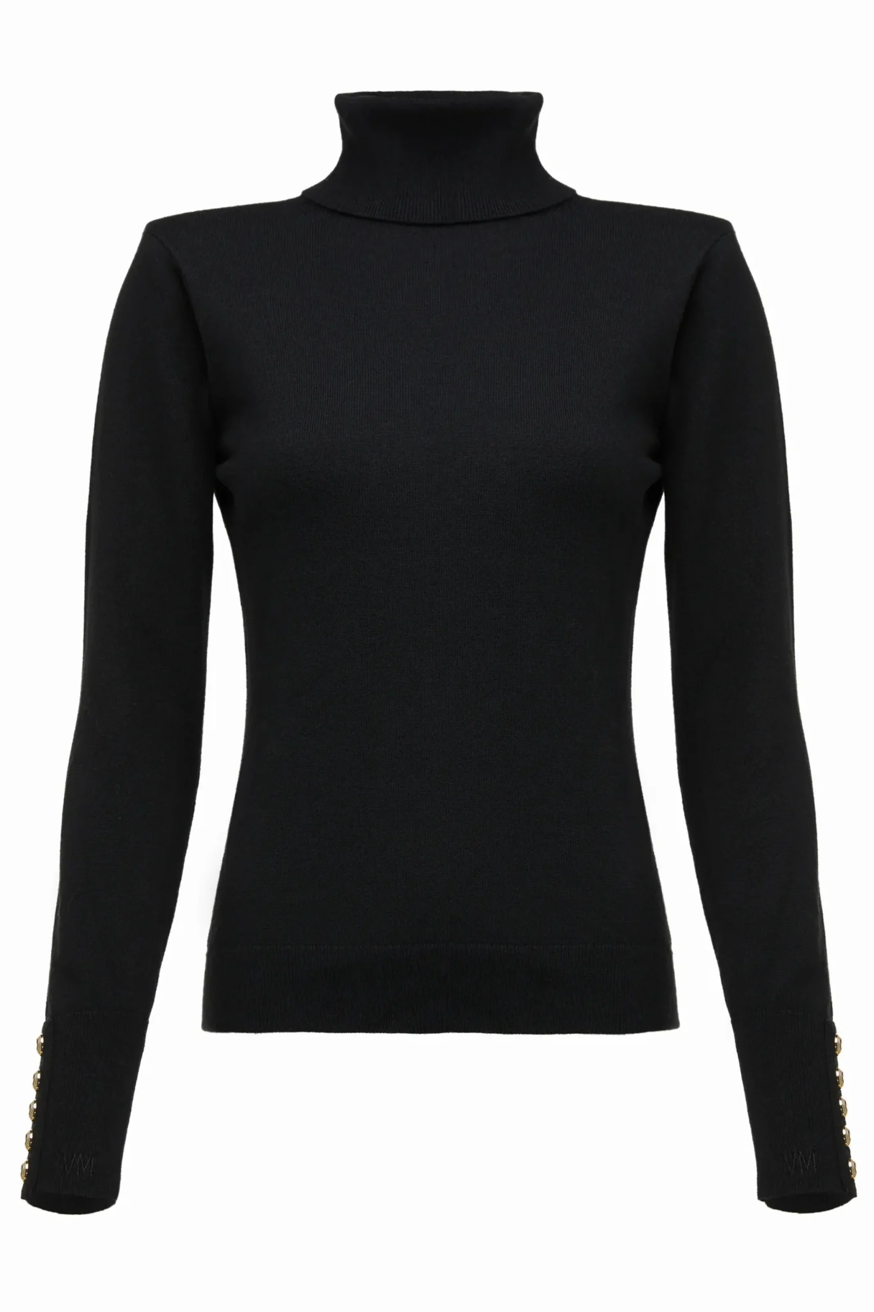 Made from a luxuriously soft cashmere with padded shoulders for a flattering structured silhouette. With long sleeves and a high roll neck, this knit makes for the perfect layering piece. Adorned with our iconic HC gold buttons on the sleeves and a subtle VM embroidered on the hem.